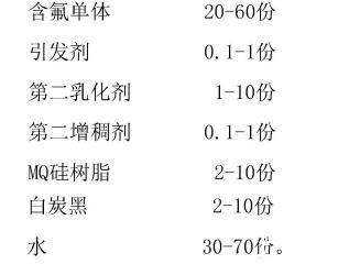 進一步的,所述含氟單體為甲基丙烯酸六氟異丙酯、全氟己基乙基甲基丙烯酸酯、全氟己基乙基丙烯酸酯、全氟丁基乙基甲基丙烯酸酯、全氟丁基乙基丙烯酸酯、甲基丙烯酸-2,2,2-三氟乙酯、甲基丙烯酸十二氟庚酯或甲基丙烯酸六氟丁酯中的至少一種。