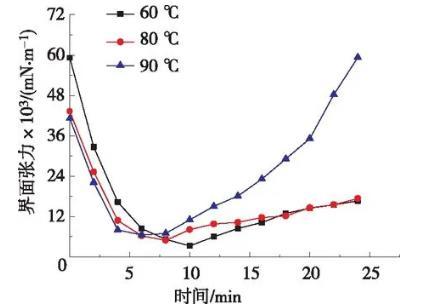 圖2溫度對體系油水界面張力影響