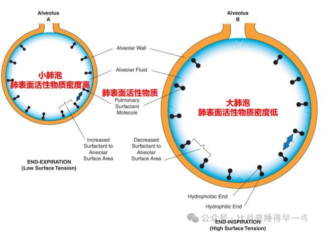 肺表面活性物質通過降低肺泡表面張力系數(單位長度表面張力)從而降低肺泡表面張力,減小肺泡回縮力,最終降低吸氣阻力,減少吸氣做功。