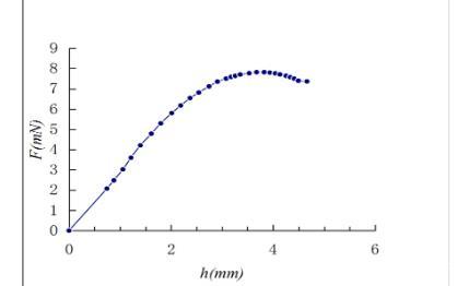 F1的準確計算至關重要,當液面上升至距刀口較小一個距離時,液面會跳躍向上粘住刀口,并引起力敏傳感器讀數的躍變。液面的跳躍發生后,以刀口與跳躍時液面的高度差作為液膜第一次拉伸量h1。由于液面高度沒有變化,所以不要考慮浮力的變化,但需考慮第一次帶起液膜的重量。