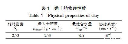 浸潤滲透試驗模型如圖2所示,主要由液槽、支撐三腳架和透明有機玻璃管組成。有機玻璃管直徑5cm,高15cm,頂端敞開,底部封閉鉆有直徑0.5cm的進漿孔。試驗時將黏土裝入有機玻璃管中,振搗壓實,底部開孔處墊有紗網,防止土體掉落。將有機玻璃管和支撐三腳架放入漿液槽內,有機玻璃管底部浸入漿液液面以下1.0cm,使漿液從底部滲入黏土中,通過觀察漿液在不同時間的滲透高度來評價漿液的浸潤滲透效果。