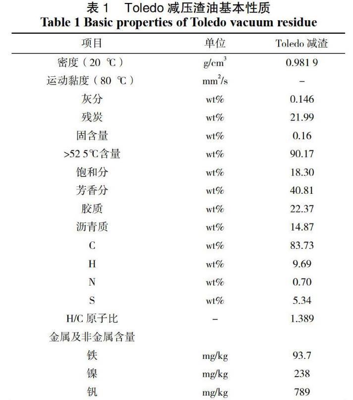 對(duì)于懸浮床反應(yīng)器的研發(fā)來說,油品的物性模型需要在與傳統(tǒng)研究中更高溫度以及更高壓力的苛刻條件下建立,這樣就造成了傳統(tǒng)研究中所涉及基本模型不一定正確的后果。準(zhǔn)確模型的建立任重而道遠(yuǎn),相關(guān)模型的建立還需要更多實(shí)驗(yàn)、理論的探索和研究。本文將以極具代表性的Toledo減渣作為樣本,進(jìn)行其在懸浮床加氫工藝條件下的界面張力以及黏溫關(guān)系曲線的近似模擬和計(jì)算。下面表一為Toledo減壓渣油的基本性質(zhì)如表1。