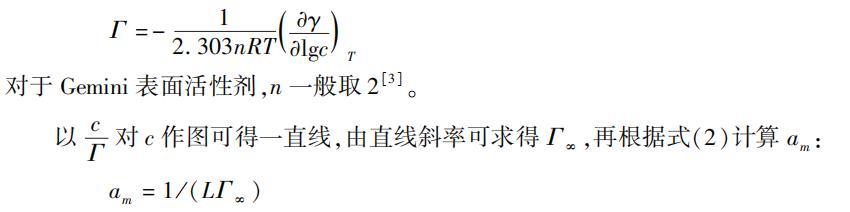 1991年,Menger等人[1]合成了以剛性基團連接離子頭基的雙烷烴鏈表面活性劑,并命名為Gemini表面活性劑,其結構如圖1所示。Gemini表面活性劑通過聯接基團將兩個單鏈表面活性劑連接起來,減弱了離子頭基間的靜電斥力,增強了碳氫鏈間的疏水結合力,使表面活性劑分子在溶液表面排列得更緊密,具有更高的表面活性。Gemini表面活性劑在生命科學、材料科學、環境科學、紡織、金屬防腐、3次采油等領域有廣闊的應用前景。本文根據油田化學專業的特點設計了陽離子型Gemini表面活性劑的合成、表征及性能測定的綜合實驗。