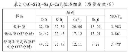 表2 CaO-SiO2-Na2O-CaF2熔渣組成(質量分數/%)