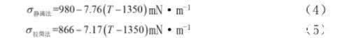 從實驗操作上看,采用拉筒法獲取表面張力,不需要熔體密度值,不需要預熔實驗,但是在測定的過程中無法保證氣氛的無氧化,因此不宜用拉筒法測定易氧化熔體的表面張力。靜滴法雖所需試樣較少,不需用標準物質校正,并且氣氛可控,但需保證預熔樣品成分穩定。