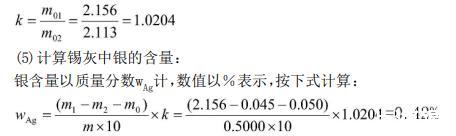 (5)計算錫灰中銀的含量:
