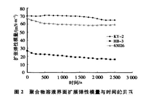 圖2聚合物溶液界面擴(kuò)展彈性模量與時(shí)間的關(guān)系