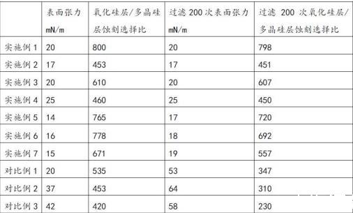 表1:多晶硅蝕刻液的實(shí)施例1-實(shí)施例7