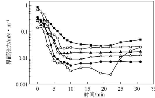 > 樁西原油與耐垢堿/表面活性劑復合體系的動態(tài)界面張力行為