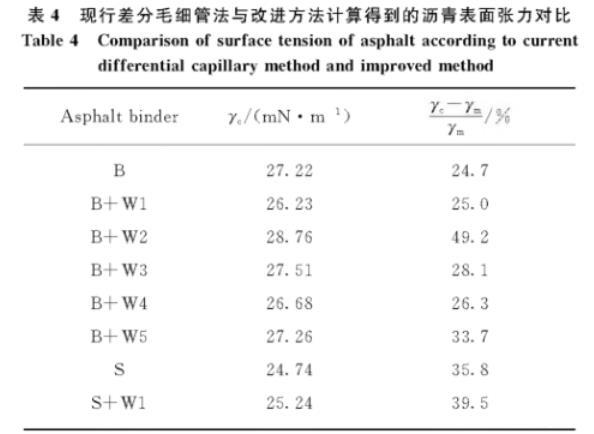 表4現(xiàn)行差分毛細管法與改進方法計算得到的瀝青表面張力對比