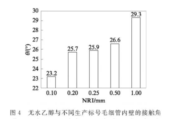 圖4無水乙醇與不同生產(chǎn)標號毛細管內(nèi)壁的接觸角