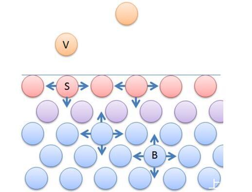 紅色為表面分子,下面為內部水分子