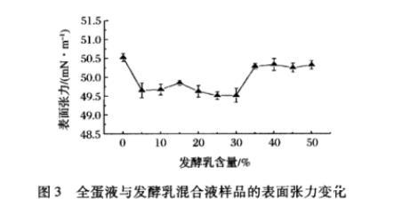 2.3全蛋液與發酵乳混合液的表面張力變化