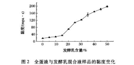 2.2全蛋液與發酵乳混合液的黏度變化