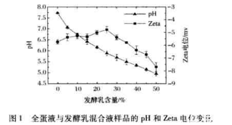 圖1全蛋液與發酵乳混合液樣品的pH和Zeta電位變化
