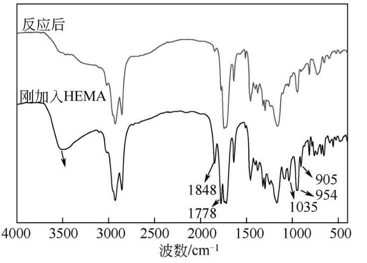 圖4 TM3與HEMA混合物反應(yīng)前后紅外對比圖