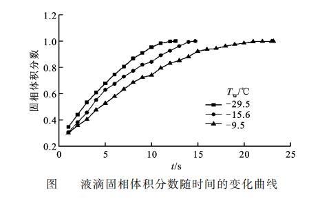 圖3液滴固相體積分?jǐn)?shù)隨時(shí)間的變化曲線