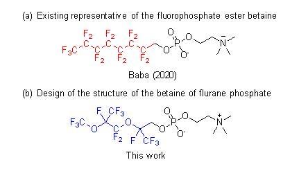 將氧原子引入到氟磷酸膽堿表面活性劑中,會(huì)對(duì)磷酸膽堿性能產(chǎn)生怎樣的影響呢?我們?cè)O(shè)計(jì)合成了一種新型氟醚磷酸膽堿表面活性劑(圖1b),考慮到長(zhǎng)氟碳鏈和長(zhǎng)氟醚鏈段具有生物累積性,我們選用了氟碳鏈為6的短鏈結(jié)構(gòu),并向其中插入兩個(gè)氧原子,將新化合物與一個(gè)鏈長(zhǎng)相近的氟磷酸膽堿表面活性劑進(jìn)行對(duì)比,結(jié)果表明新型氟醚磷酸膽堿表面活性更佳。我們進(jìn)一步探索了新氟醚磷酸膽堿的泡沫性能與潤(rùn)濕性能,結(jié)果表明氟醚磷酸膽堿的穩(wěn)泡性好、可在聚四氟乙烯(PTFE)上潤(rùn)濕,是一類具有良好應(yīng)用前景的表面活性劑。