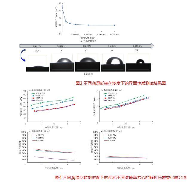 裂縫性水封氣藏解封過程中潤濕反轉劑濃度、氣水界面張力變化(三)