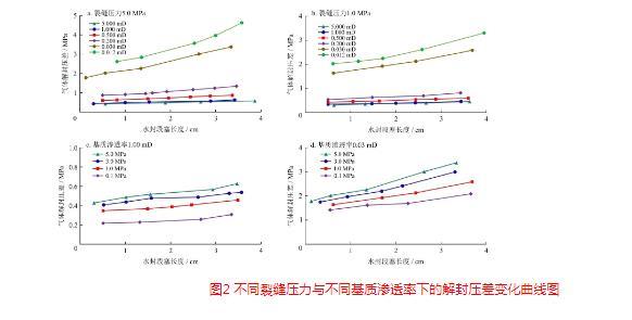 式中Δp表示解封壓差,MPa;Lw表示水封段塞長度,cm;pf表示裂縫壓力,MPa;K表示基質滲透率,mD。