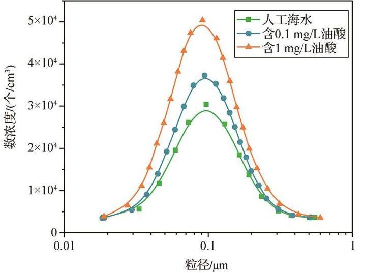 圖3油酸對(duì)人工海水產(chǎn)生的海洋飛沫氣溶膠(SSA)粒徑分布的影響