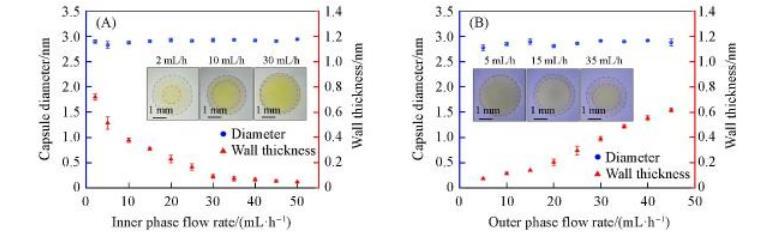 2.3內(nèi)相/外相流速對(duì)水/水微囊直徑和壁厚的影響