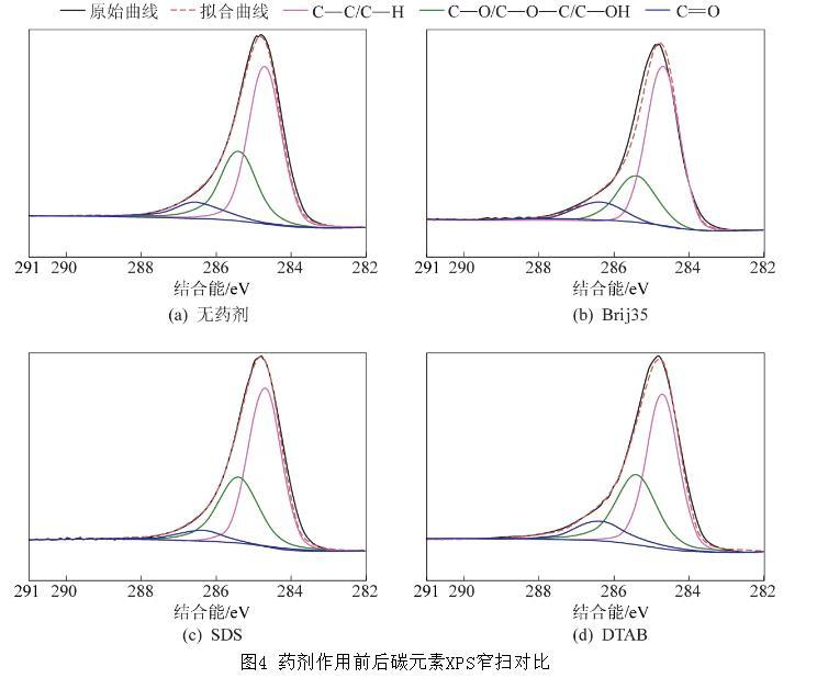 圖4藥劑作用前后碳元素XPS窄掃對比
