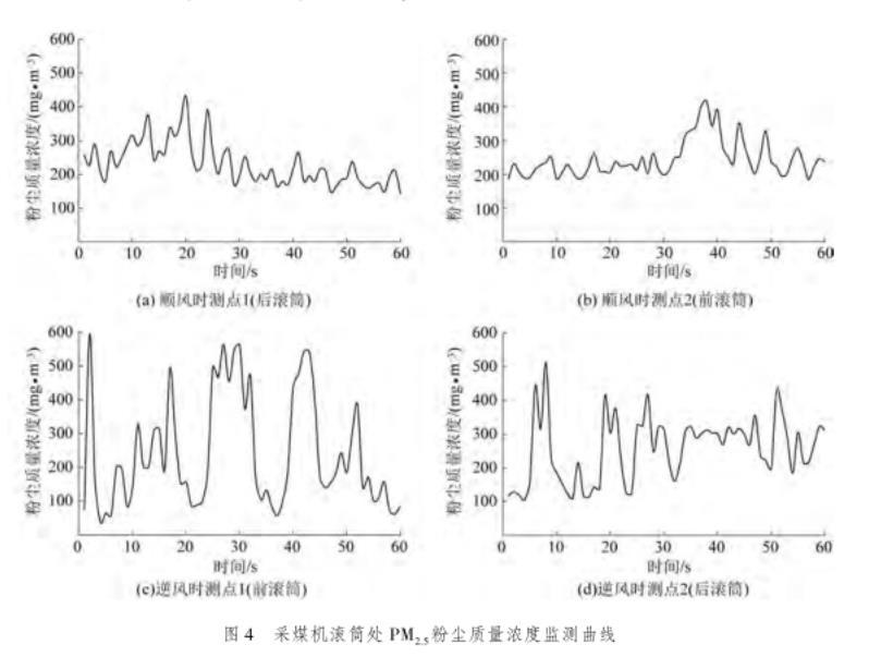 圖4采煤機(jī)滾筒處PM2.5粉塵質(zhì)量濃度監(jiān)測(cè)曲線