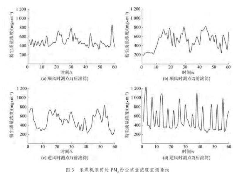 圖3采煤機(jī)滾筒處PM5粉塵質(zhì)量濃度監(jiān)測(cè)曲線