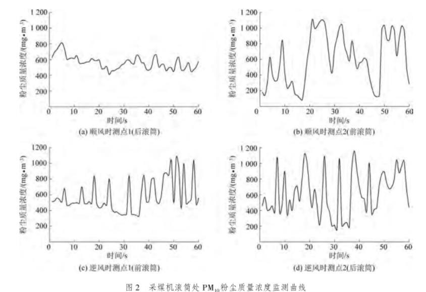 圖2采煤機(jī)滾筒處PM10粉塵質(zhì)量濃度監(jiān)測(cè)曲線