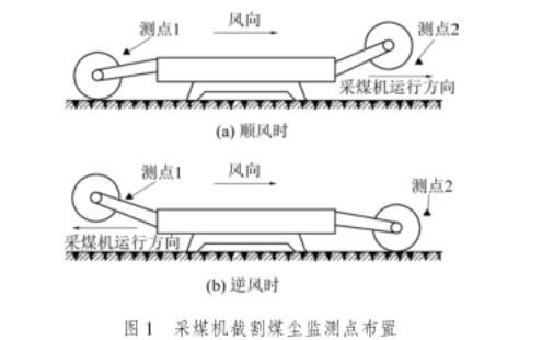 圖1采煤機(jī)截割煤塵監(jiān)測(cè)點(diǎn)布置