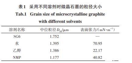 球磨溶劑對微晶石墨粒徑的影響