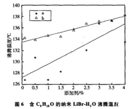 圖6含C8H 18O的納米LiBr-H 2O沸騰溫度