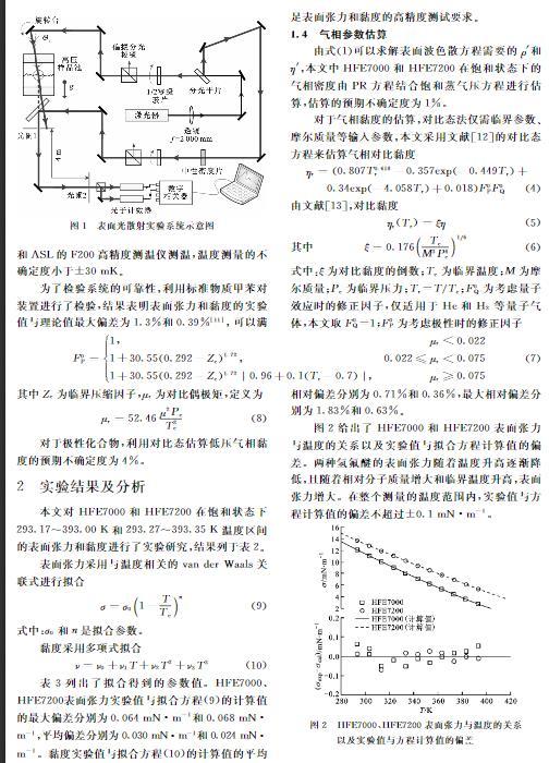 本文對HFE7000和HFE7200在飽和狀態(tài)下293.17~393.00 K和293.27~393.35 K溫度區(qū)間的表面張力和黏度進行了實驗研究,結果列于表2。