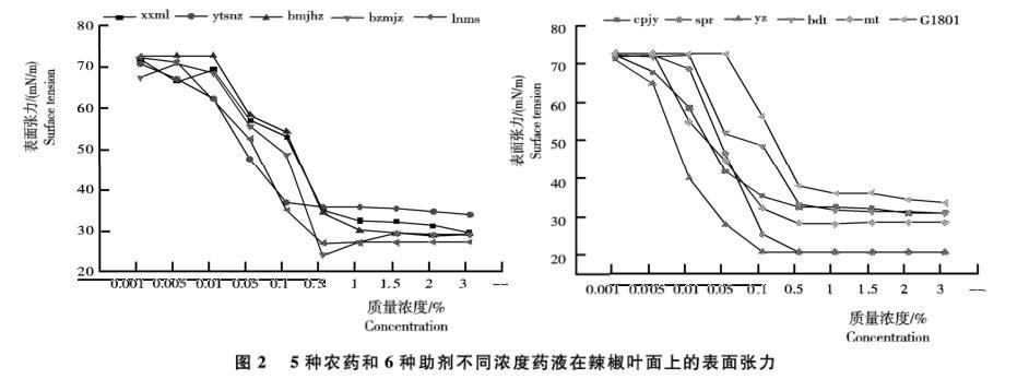 基于表面張力儀等研究常用農(nóng)藥和表面活性劑在辣椒葉面的潤(rùn)濕能力——結(jié)果與分析、結(jié)論