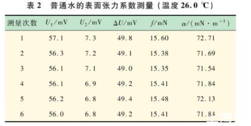 表2普通水的表面張力系數(shù)測量(溫度26.0℃)