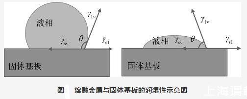 越大,說明液態(tài)金屬對固體基板的潤濕性越差;反之,越好。當