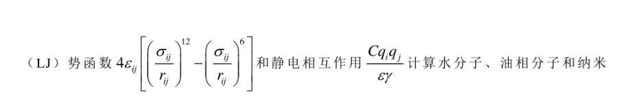 采用SPC/E模型描述水分子間相互作用,該模型中由于H原子質(zhì)量小,對水分子間的H—H和H—O相互作用可忽略不計。選取C10H22為油相,原子間的相互作用勢采用CHARMM勢函數(shù)來描述。VA8模型在研究二硫化鉬結(jié)構(gòu)和振動特性時具有較高的準確性,故選取其來描述納米片原子間的相互作用。以直鏈烷烴為改性劑改變納米片的親油親水性,采用CHARMM力場來描述原子間相互作用。采用6/12 Lennard-Jones(LJ)