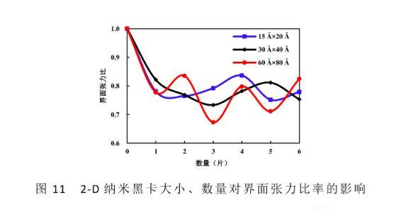 圖11 2-D納米黑卡大小、數(shù)量對(duì)界面張力比率的影響