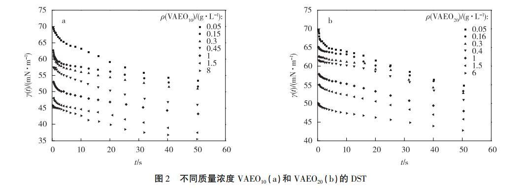 2.2不同質量濃度VAEO的動態表面張力