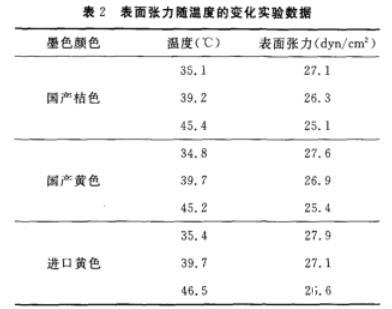 對(duì)于主要成分是有機(jī)油類的陶瓷墨水,隨著溫度的升高,內(nèi)部分子運(yùn)動(dòng)加劇,分子之間距離增大,使得分子力減弱,從而導(dǎo)致液體表面使其面積縮小的力減弱,即表現(xiàn)為表面張力減小(見(jiàn)圖2)。