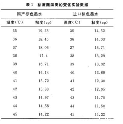 3)進(jìn)口陶瓷墨水與國(guó)產(chǎn)陶瓷墨水相比,內(nèi)在的性能參數(shù)(表面張力、粘度、容重)隨溫度變化的規(guī)律一致。