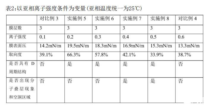 ?對比實(shí)驗:亞相溫度過高(>30°C)或離子強(qiáng)度過低(<0.2)會導(dǎo)致纖維排列混亂(對比例1–4),超純水亞相則無法形成D周期結(jié)構(gòu)(對比例5)。