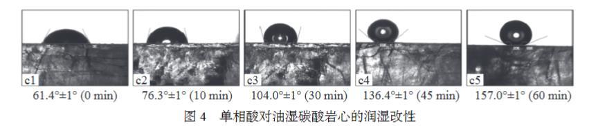 圖4單相酸對油濕碳酸巖心的潤濕改性