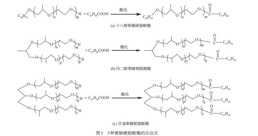 圖1 3種聚醚硬脂酸酯的反應式