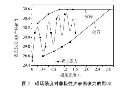 圖2磁場(chǎng)強(qiáng)度對(duì)非極性油表面張力的影響