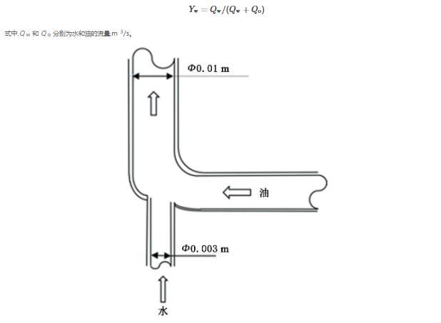 實驗步驟:將油通過注入泵A泵入循環泵中, 將循環泵中的油通過伺服電機驅動活塞移動以一定的流速注入垂直管道,同時利用注入泵B將容器B中的表面活性劑水溶液通過注入點泵入垂直管道中的上升油流中,注水管段直徑0.003m,位于垂直上升管的底部,注入點的幾何形狀見圖2。