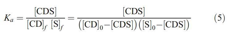 Ka通過將等式6與[CDS]與[CD]0的實驗數據擬合而確定。在式6中,CD0和S0分別為總環糊精和總表面活性劑濃度。