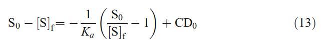 其中,CD/S、[S]f、[CD]f、CD0和S0分別為包合物、游離表面活性劑、游離CD、總CD和總表面活性劑濃度。通過組合和重新排列等式。9-11,我們得到了以下關(guān)系式: