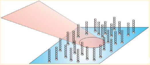 在過去的幾十年中,紅外-可見和頻發(fā)生(SFG)已被證明是研究水相表面活性劑的極好工具。1.?9在該技術(shù)中,紅外激光束與可見激光束在感興趣的界面處組合,并檢測(cè)兩者的和頻光束。在中心對(duì)稱介質(zhì)中,信號(hào)的產(chǎn)生通常是被禁止的,因此對(duì)界面上分子的存在非常敏感。如果紅外激光與界面分子的振動(dòng)躍遷共振,則SFG強(qiáng)度增強(qiáng),從而可以測(cè)量界面分子的振動(dòng)光譜。SFG光譜的形狀包含有關(guān)表面活性劑的分子構(gòu)象和方向的信息。大多數(shù)研究都集中在高密度單分子膜上,盡管在低密度下有令人驚訝的觀察報(bào)告。我們中的一些人(Roke等人4)以前曾報(bào)告過C?H不溶性表面活性劑DPPC(1,2-二棕櫚酰-sn-甘油-3-磷酸膽堿;見圖1)在水上的拉伸模式,密度約為100?2/分子,密度間隔小于1?2/分子,這歸因于脂質(zhì)尾部的卷曲和未卷曲。最近,Chen等人9報(bào)告了DPPC在水和含有低二甲基亞砜摩爾分?jǐn)?shù)的水上的CH信號(hào)在該密度附近的類似行為。此外,他們報(bào)告說,來自DPPC頭部總成的P=O振動(dòng)信號(hào)僅在CH信號(hào)存在時(shí)出現(xiàn)。他們將CH信號(hào)的缺失/存在歸因于DPPC分子的無序/有序尾部。P=O信號(hào)的缺失可通過頭部大的取向分布來解釋。
